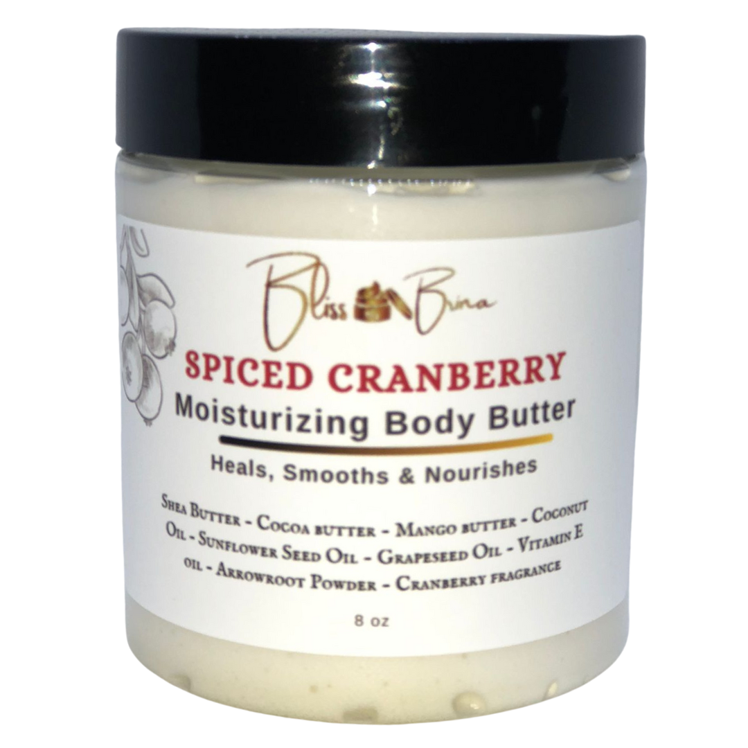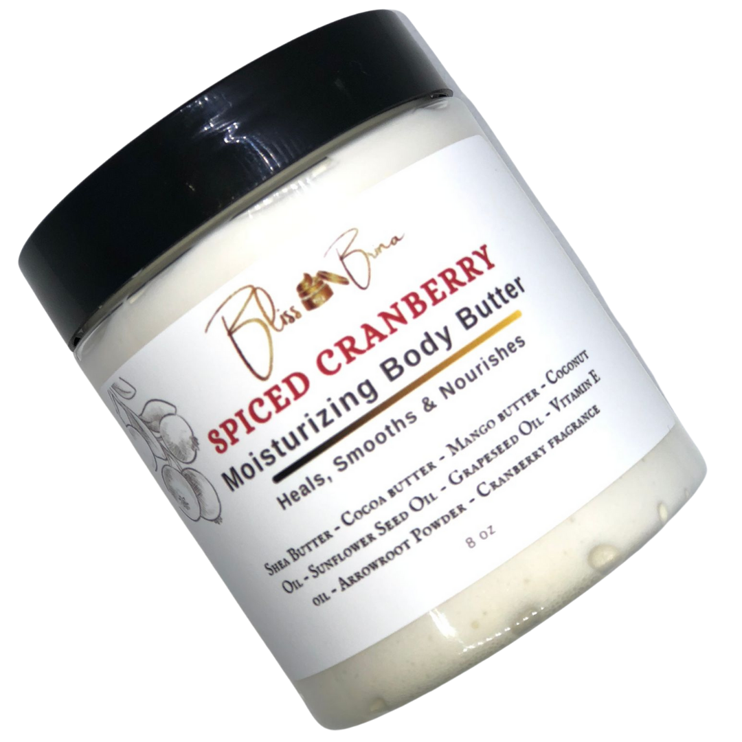 Ingredients: Shea Butter – Cocoa butter – Mango butter – Coconut Oil – Sunflower Seed Oil – Grapeseed Oil – Vitamin E oil – Arrowroot Powder – Cranberry fragrance